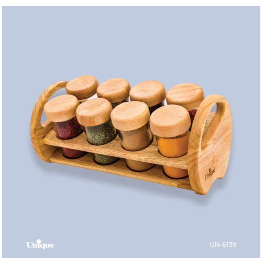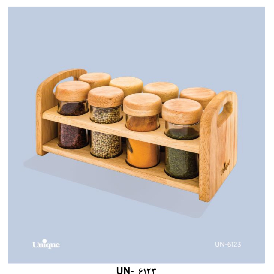 ست ادویه۸ تایی مستطیل چوبی یونیک