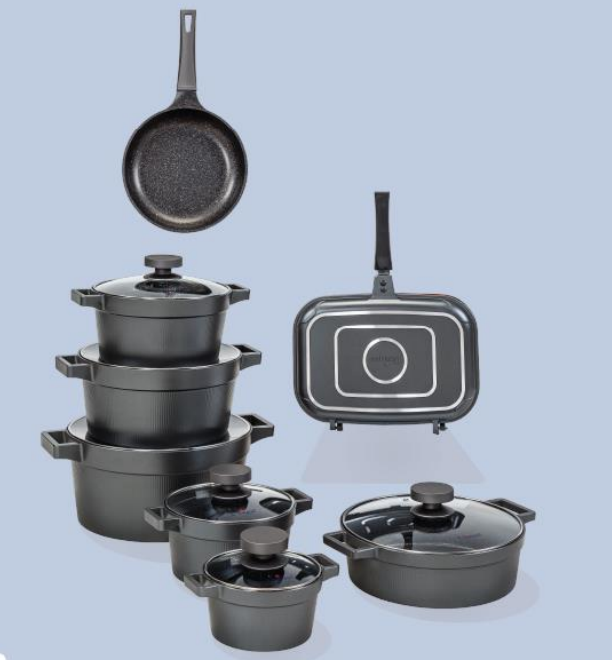 سرویس قابلمه ۱۵ پارچه مشکی درب سیلیکون دیاموند